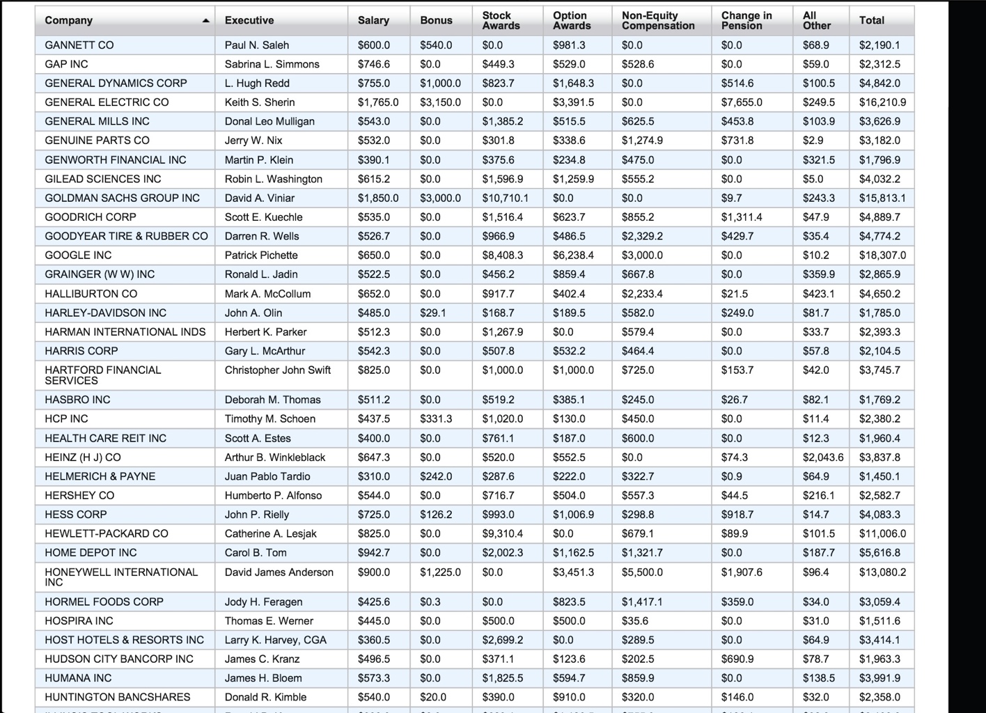 Here is CFO Compensations for 498 S&P 500 Companies, list is pulled up from S&P Survey and is current as of May 2012. Thanks to WSJ.