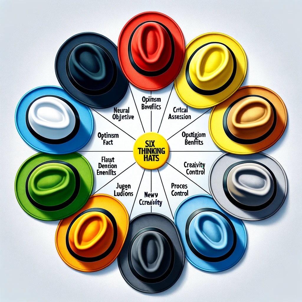 Always approach problem-solving using the Six Thinking Hats framework, which is a valuable tool for examining issues from various perspectives: